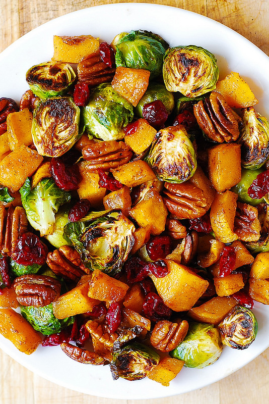Roasted Brussels Sprouts, Cinnamon Butternut Squash, Pecans, and Cranberries