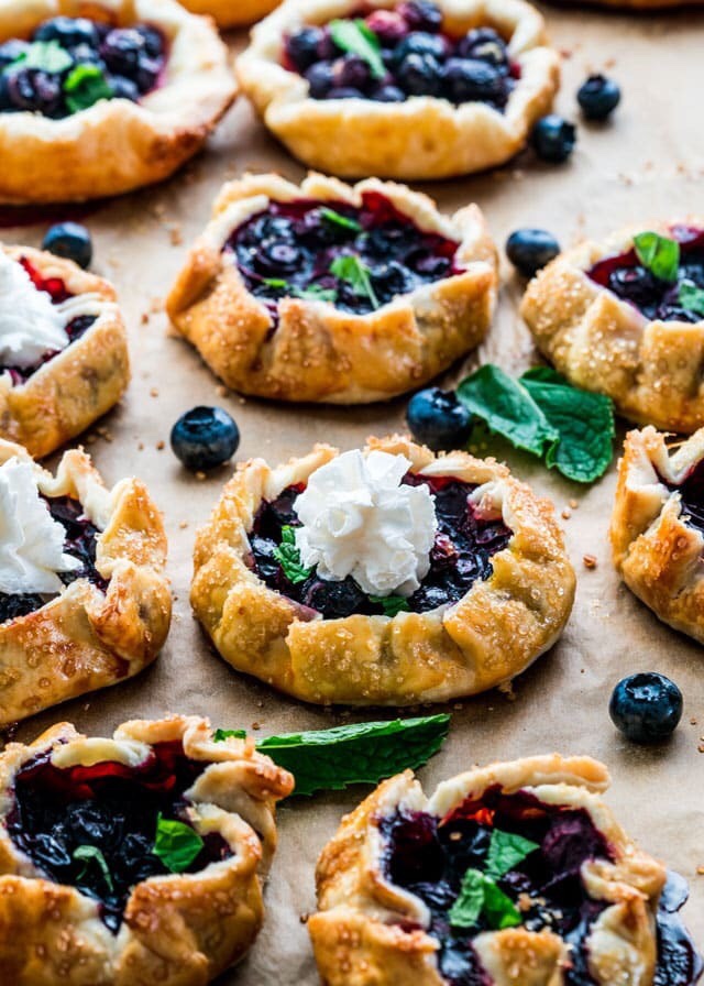 • Spoon about 1 to 2 tbsp of the blueberry mixture into the center of a pie crust round, then fold the dough up over the filling. Repeat with remaining ingredients.