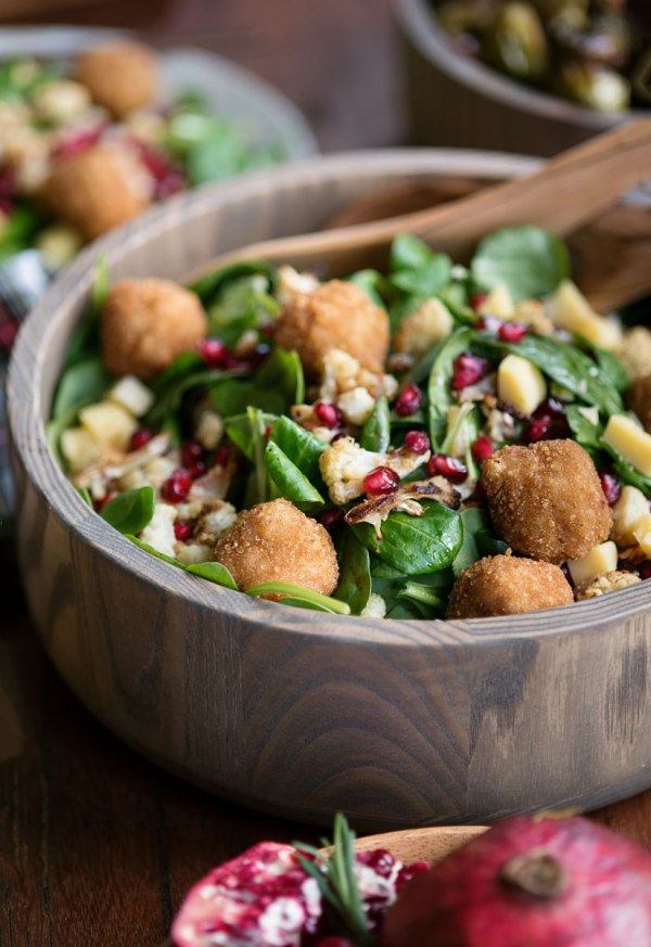 Winter Salad w/Roasted Cauliflower Pomegranates & Arancini